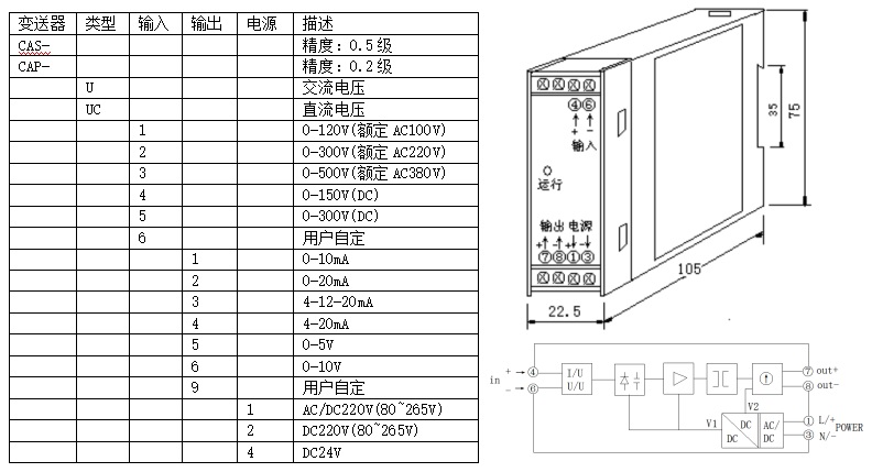 CAS-U141交流電壓變送器是將被測交流電壓信號轉換成按線性比例輸出直流電流并隔離的設備,配以相應的指示儀表或裝置是電力系統(tǒng)、遠動裝置、自動化控制系統(tǒng)等必需的模擬量采集模塊。