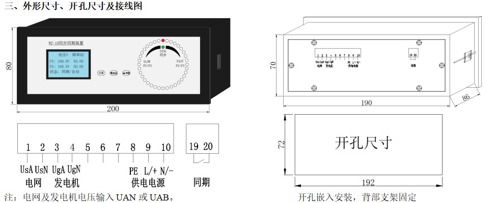 參數(shù):發(fā)電機(jī)同步同期并網(wǎng),單、三相