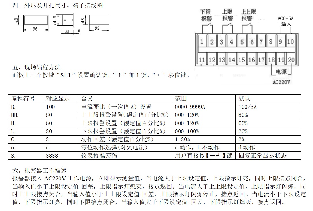 參數(shù):交流電流或電壓測(cè)量,上上限,上限,下限報(bào)警