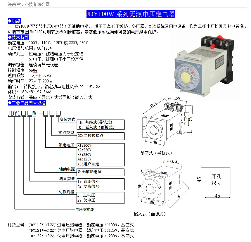 JDY100W可調(diào)節(jié)電壓繼電器(無輔助電源),適用于高低壓線路、變壓器,直流系統(tǒng)及用電設(shè)備,作為單相電壓檢測及控制設(shè)備。可調(diào)節(jié)范圍80~120%,調(diào)節(jié)及檢測精度高,是高低壓系統(tǒng)簡便可靠的電壓繼電保護(hù)。