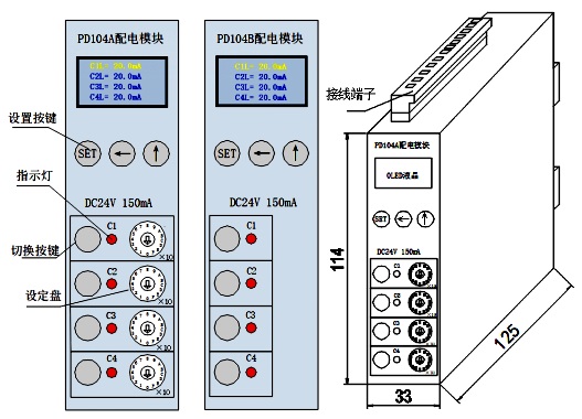 PD104系列直流配電控保模塊是DC24V直流配電系統(tǒng)控制保護(hù)模塊,以下簡(jiǎn)稱(chēng)模塊,該模塊具備1路輸